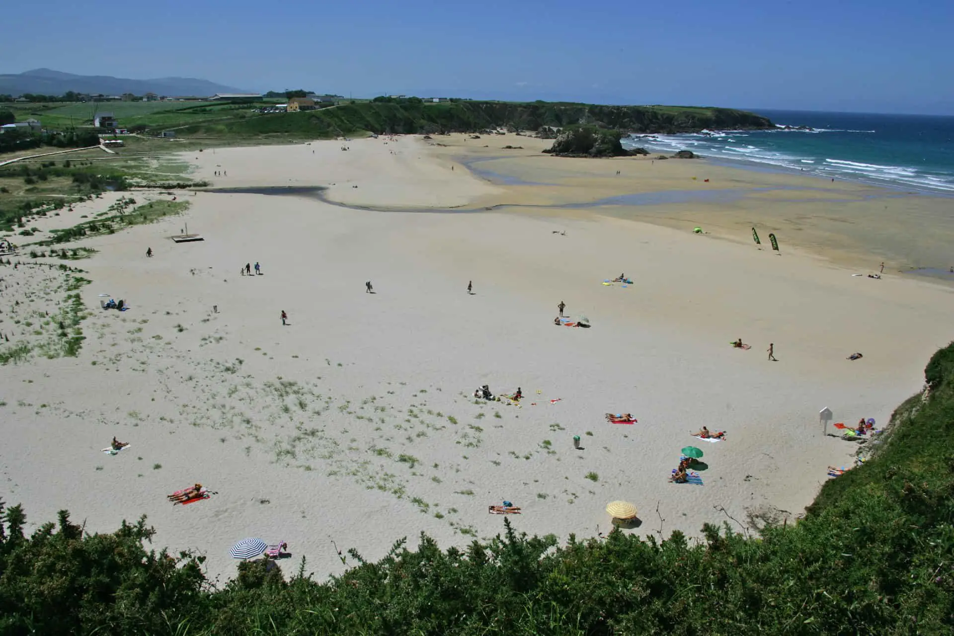 Playa Anguileiro. Características. Ocupación: Alta. Longitud aproximada: 150 m (junto a la de Los Campos 250 m) Accesos: Rodados. Servicios: Aparcamiento: Sí. Socorrismo: No. Señalizada con banderas. Material: Arena fina. Color: T ...